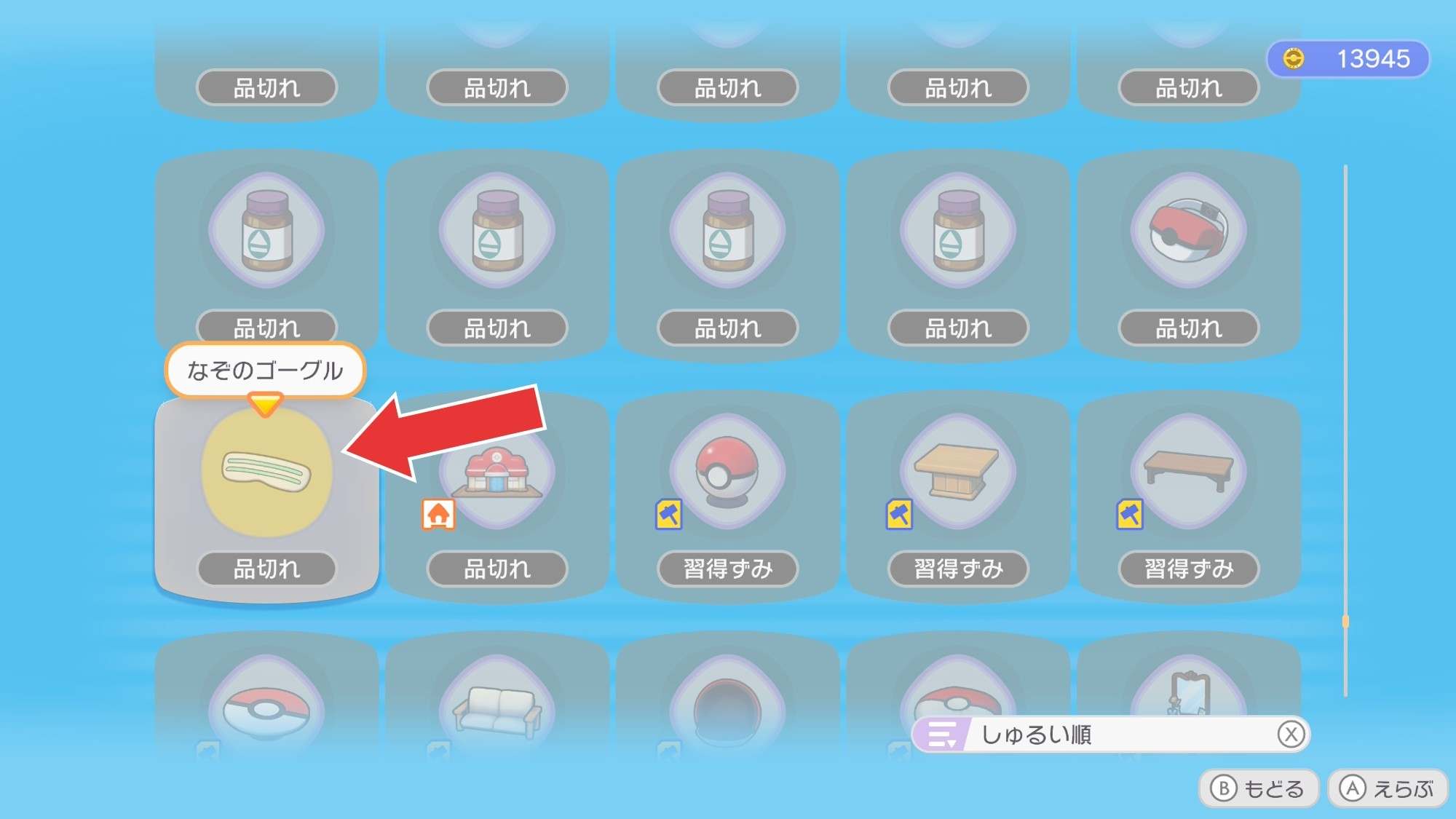 | 1 | 拡大するショップでなぞのゴーグルを購入※商品になければ環境レベルを上げる |