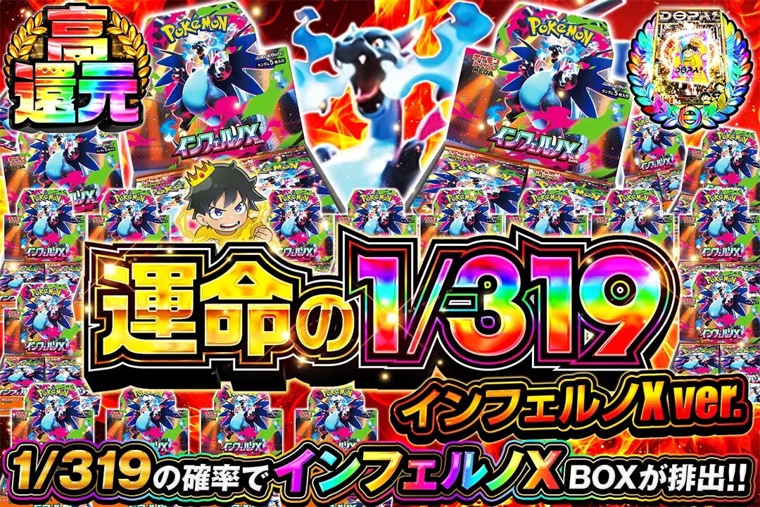 DOPAには、ボックスが当たるオリパもあります。2026年4月時点では『インフェルノX』や『ロケット団の栄光』などのボックスオリパが人気です。