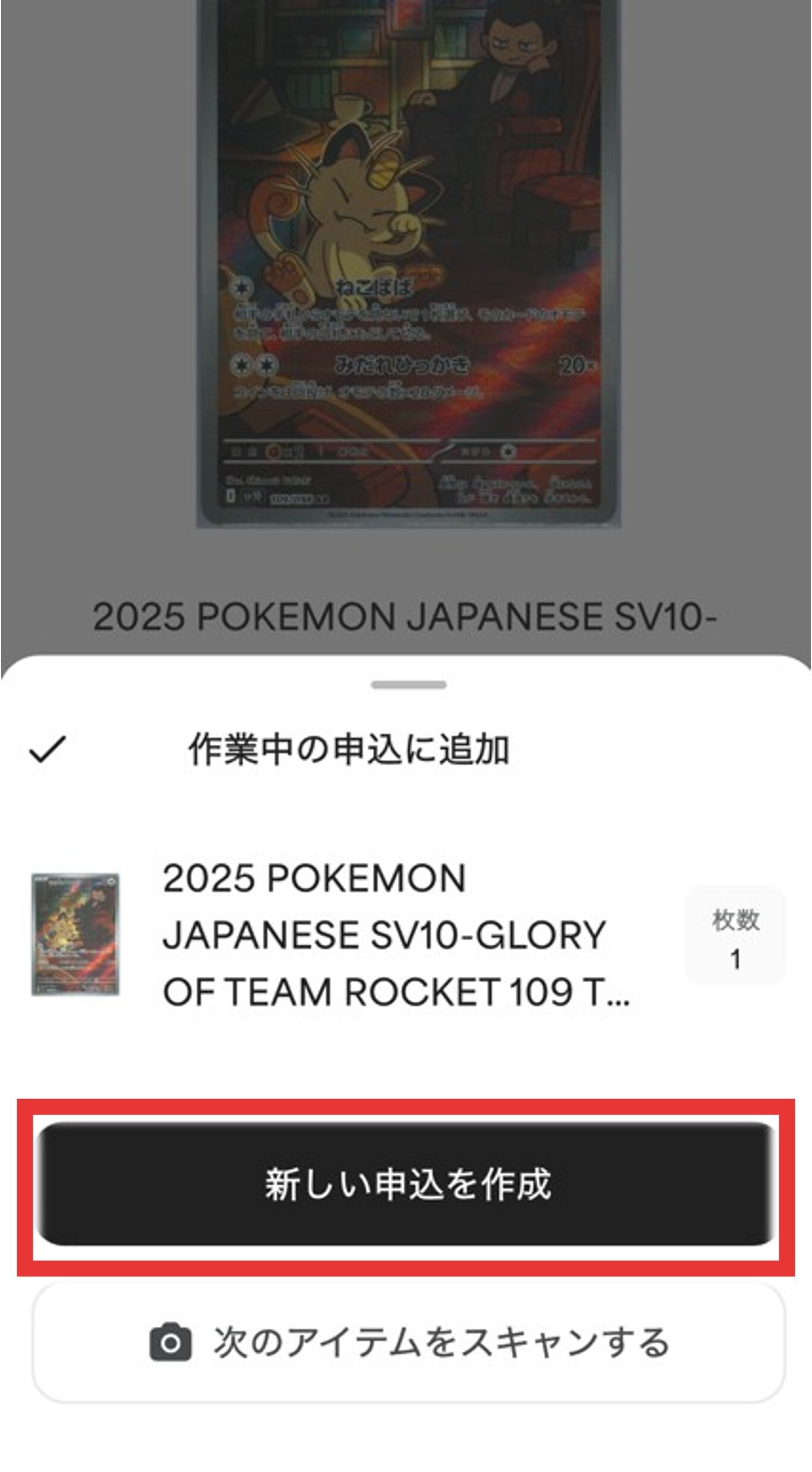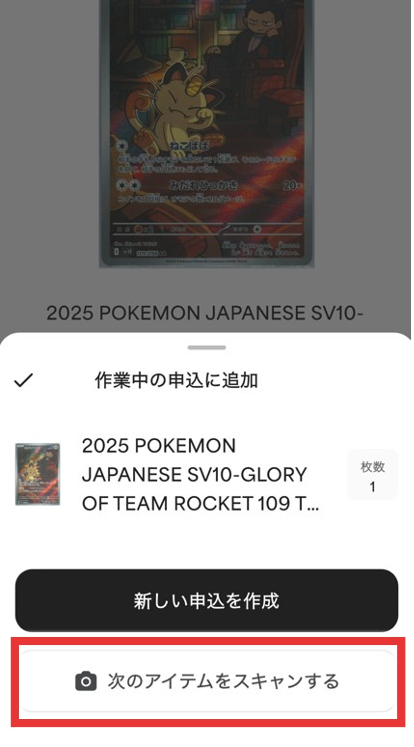 拡大する鑑定したいカードの詳細を開いたら「グレード」をタップして、カートにアイテムを追加しましょう。手動の場合はカード名を英語で記載したのち「アイテムを追加する」をタップします。
