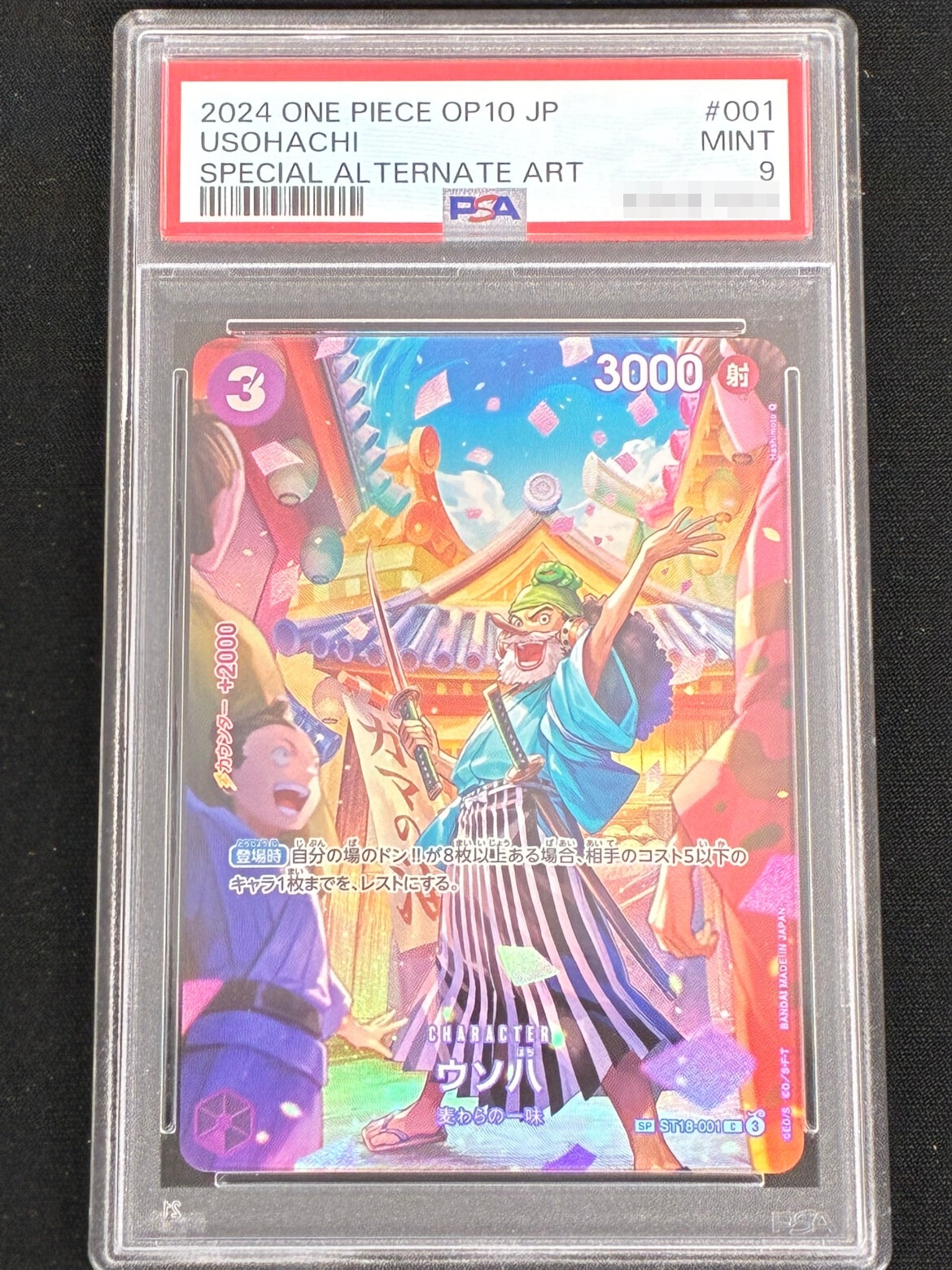 | PSA9 | ・裏面にごくわずかな汚れやシミがある ・小さな白かけが一つだけある ・センタリングずれはPSA10より緩い |