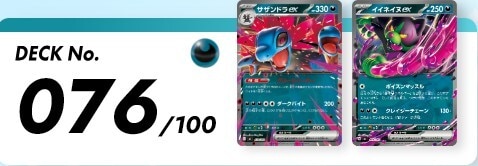 スタートデッキ100 バトルコレクションは、2025年12月19日に発売された構築済みデッキです。100種類あるデッキから1つがランダムで封入されており、中にはフルアート仕様の当たりカードが入ったものもあります。