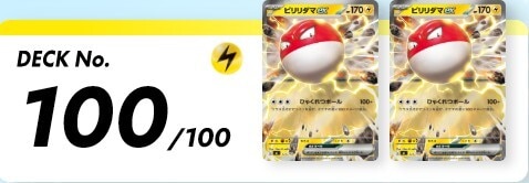 また、100種類あるデッキの中からピカチュウexが入っている25番ピンポイントで当てるのは非常に難しく、希少価値も高いです。そのため、ピカチュウex SARは当たりカードになっています。