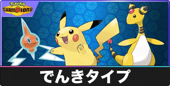 ポケモンチャンピオンズのでんきタイプのポケモンを一覧形式でご紹介。電気タイプのポケモンの特性や種族値を記載しているので、ポケチャンででんきポケモンを探したいときにご覧ください。