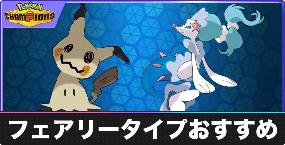 ポケモンチャンピオンズのフェアリータイプのおすすめポケモンを紹介しています。ポケチャンで、強いフェアリータイプを育成する参考にしてください。