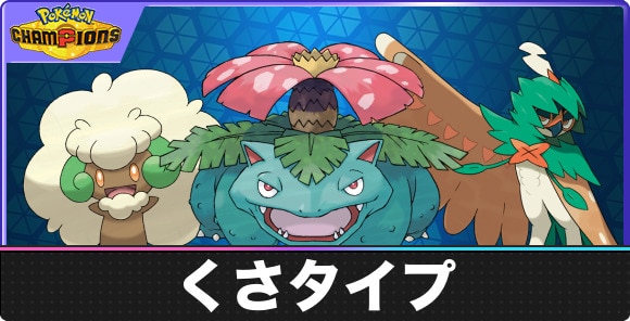 ポケモンチャンピオンズのくさタイプのポケモンを一覧形式でご紹介。草タイプのポケモンの特性や種族値を記載しているので、ポケチャンでくさポケモンを探したいときにご覧ください。