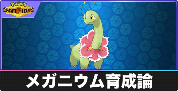 ポケモンチャンピオンズのメガニウム育成論です。おすすめ技構成や努力値(能力ポイント)、性格、持ち物を型ごとに掲載。メガニウムの対策も記載しているので、ポケチャンで育成する参考にして下さい。