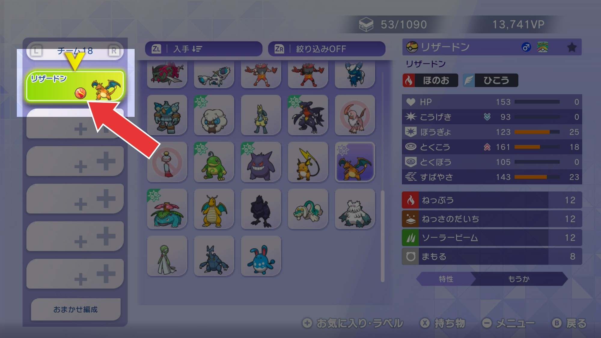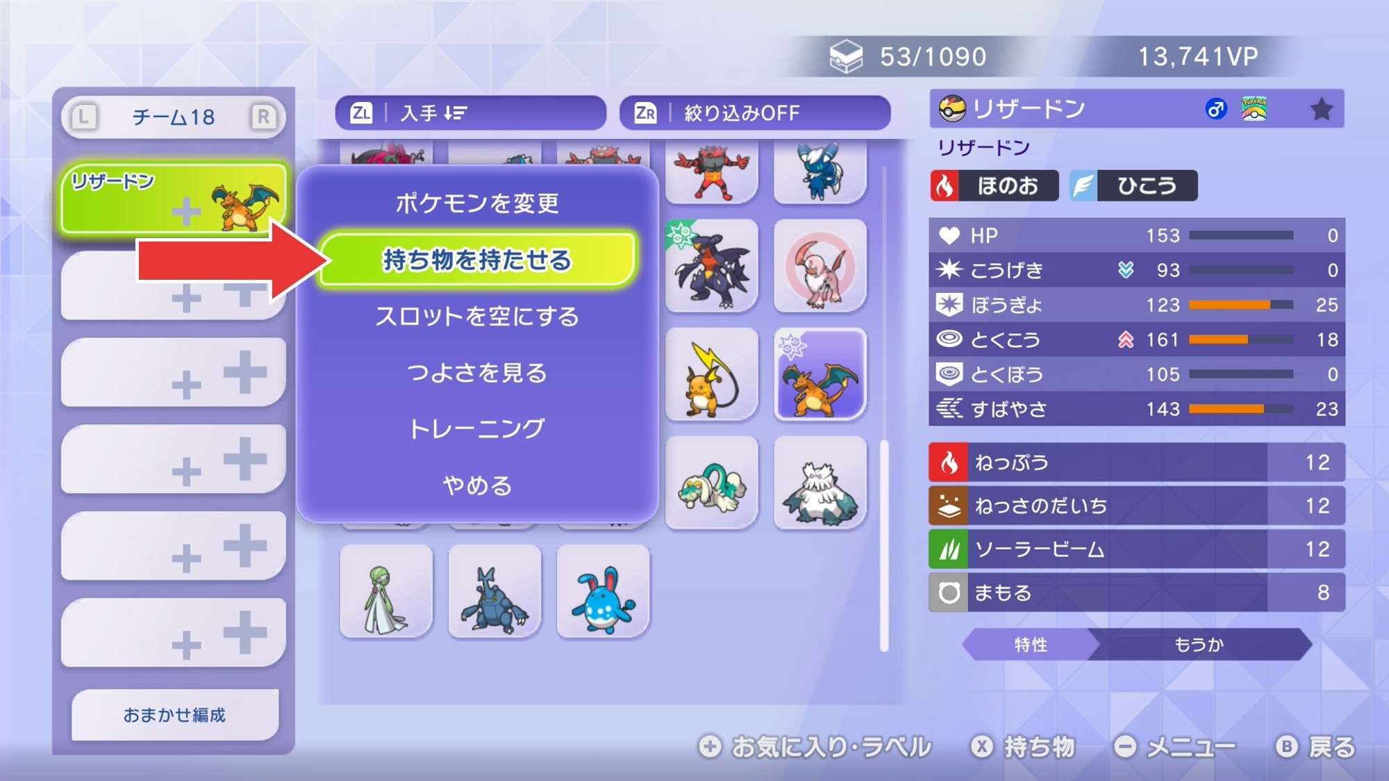 | チームに登録して持ち物のタブから持たせる | |||||||||