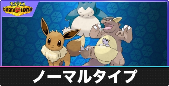 ポケモンチャンピオンズのノーマルタイプのポケモンを一覧形式でご紹介。ノーマルタイプのポケモンの特性や種族値を記載しているので、ポケチャンでノーマルポケモンを探したいときにご覧ください。