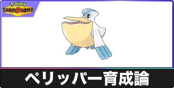 ポケモンチャンピオンズのペリッパーの育成論と対策をご紹介。ペリッパーの種族値やタイプ相性などの基本情報はもちろん、おすすめの型やパーティ、対策についても記載しています。