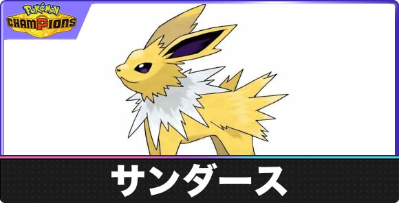 ポケモンチャンピオンズのサンダースの覚える技と特性をご紹介。サンダースの弱点やタイプ相性などの基本情報はもちろん、登場作品、おすすめ入手方法、覚える技についても記載しています。