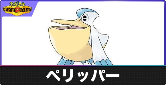 ポケモンチャンピオンズのペリッパーの覚える技と特性をご紹介。ペリッパーの弱点やタイプ相性などの基本情報はもちろん、登場作品、おすすめ入手方法、覚える技についても記載しています。