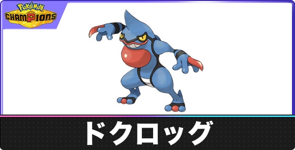 ポケモンチャンピオンズのドクロッグの弱点とタイプ相性をご紹介。ドクロッグの基本情報はもちろん、登場作品、おすすめ入手方法、覚える技についても記載しています。ポケチャンでドクロッグについて調べる際の参考にしてください。