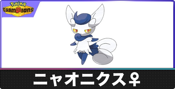 ポケモンチャンピオンズのニャオニクス♀の弱点とタイプ相性をご紹介。ニャオニクス♀の基本情報はもちろん、登場作品、おすすめ入手方法、覚える技についても記載しています。ポケチャンでニャオニクス♀について調べる際の参考にしてください。