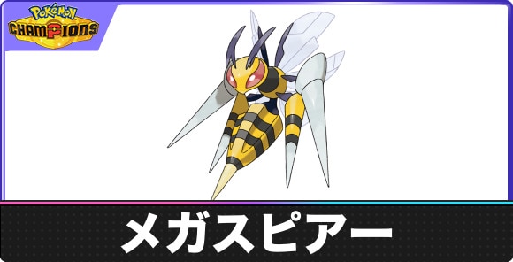 ポケモンチャンピオンズのメガスピアーの覚える技と特性をご紹介。メガスピアーの弱点やタイプ相性などの基本情報はもちろん、登場作品、おすすめ入手方法、覚える技についても記載しています。