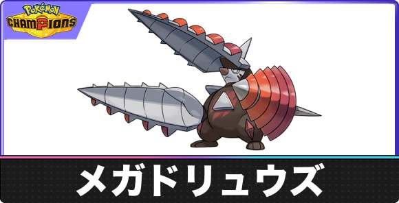 ポケモンチャンピオンズのメガドリュウズの弱点とタイプ相性をご紹介。メガドリュウズの基本情報はもちろん、登場作品、おすすめ入手方法についても記載しています。ポケチャンでメガドリュウズについて調べる際の参考にしてください。