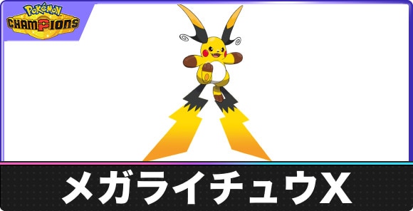 ポケモンチャンピオンズのメガライチュウXの覚える技と特性をご紹介。メガライチュウXの弱点やタイプ相性などの基本情報はもちろん、登場作品、おすすめ入手方法、覚える技についても記載しています。