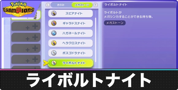 ポケモンチャンピオンズ(ポケチャン)のライボルトナイトの入手方法をご紹介。ショップでは購入できないことやライボルトナイトの効果についても記載しています。ポケチャンでライボルトナイトが見つからない方は参考にしてください。