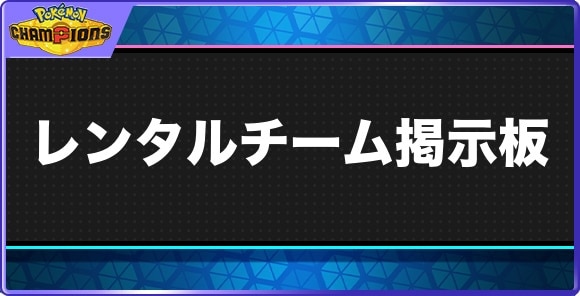 ポケモンチャンピオンズのレンタルチーム掲示板です。ポケチャンでレンタルパーティを借りたい、貸す時の交流の場としてご利用ください。