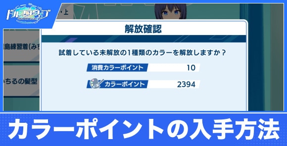 ドルフィンウェーブ(ドルウェブ)のカラーポイントの入手方法を記載。親愛度報酬やショップ交換などカラーポイントを入手できる箇所・・・