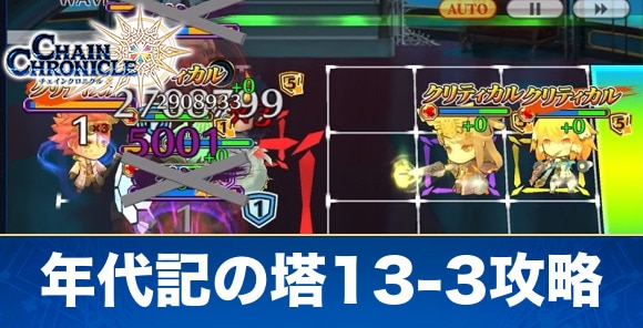 チェンクロ(チェインクロニクル)の年代記の塔13-3攻略です。ステージ要点や攻略のコツに加え、実際にクリアしたパーティや立ち・・・