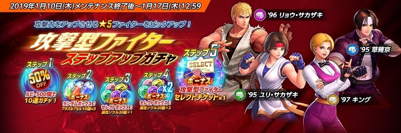 【アルテマ】KOFオールスター(KOFALLSTAR)の攻撃型ステップアップガチャは引くべきかをご紹介。ピックアップキャラの・・・