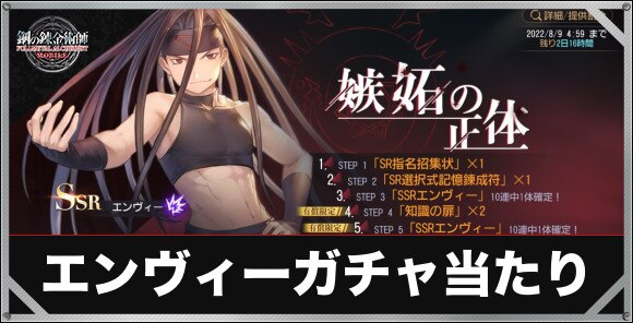 ハガモバ(鋼の錬金術師モバイル)のエンヴィーガチャは引くべきかを記載。排出キャラやエンヴィーの性能についても紹介しています。
