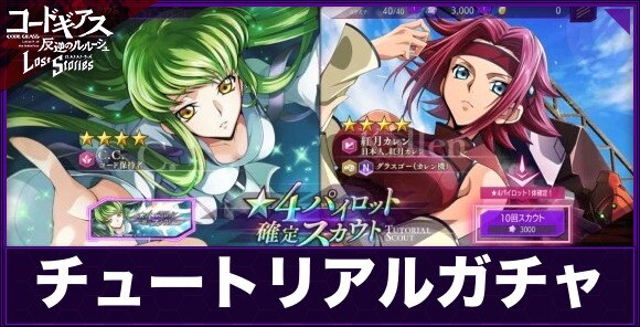 コードギアスロスストのチュートリアルガチャのおすすめ当たりキャラを解説。コードギアスロストストーリーズの星4パイロットスカウ・・・
