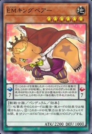 遊戯王マスターデュエルのEMキングベアーをご紹介。攻撃力、種族、効果などの基本情報に加え、入手方法、シークレットパックについ・・・