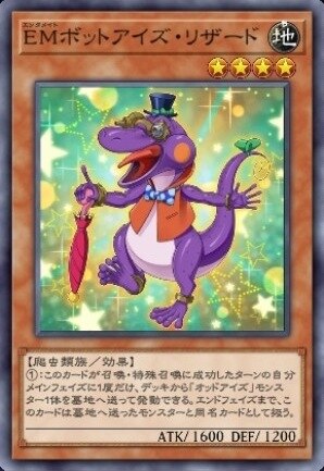 遊戯王マスターデュエルのEMボットアイズ・リザードをご紹介。攻撃力、種族、効果などの基本情報に加え、入手方法、シークレットパ・・・