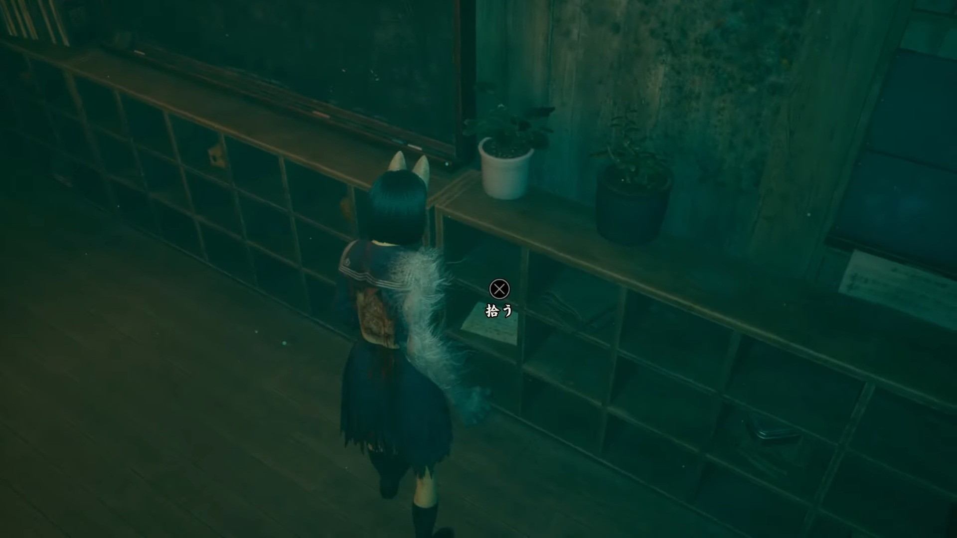 凛子エリアの教室東側にある棚(ライト変更後)
