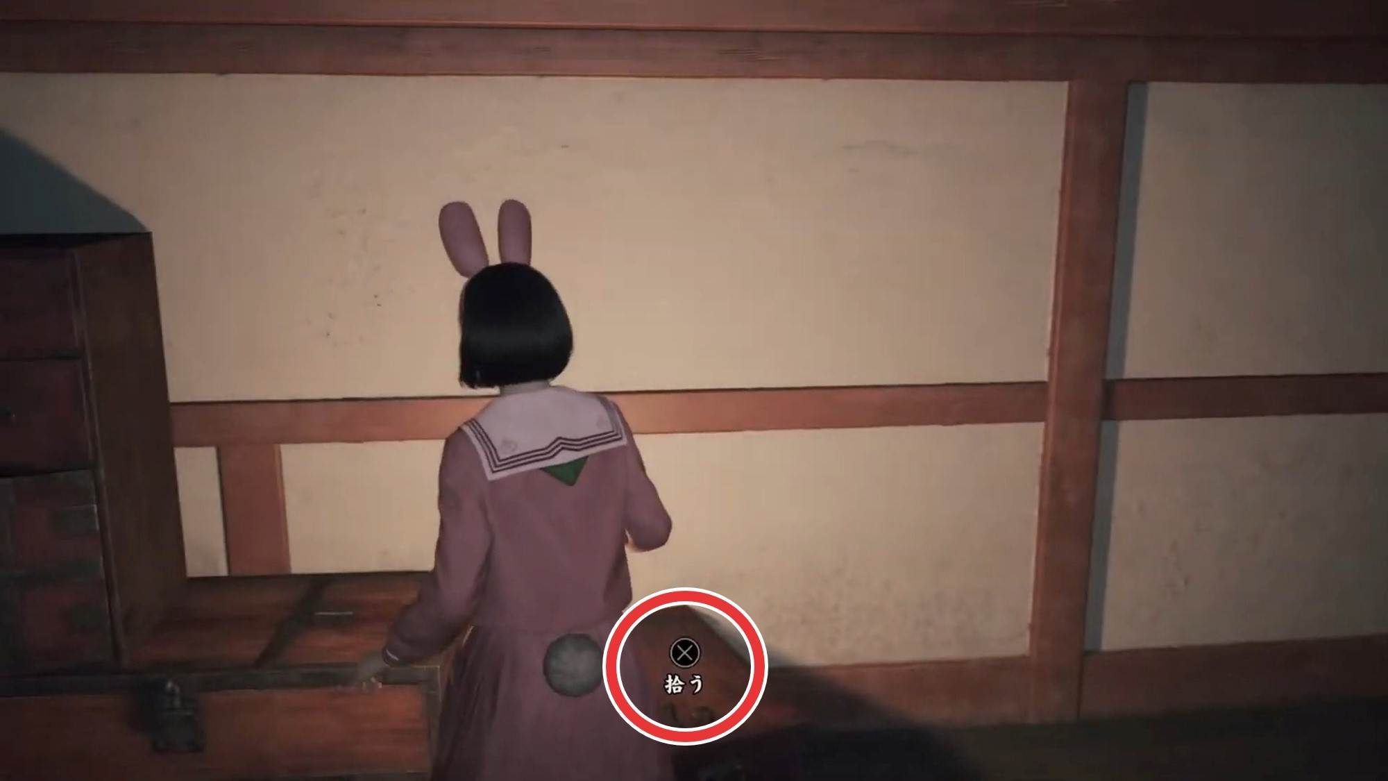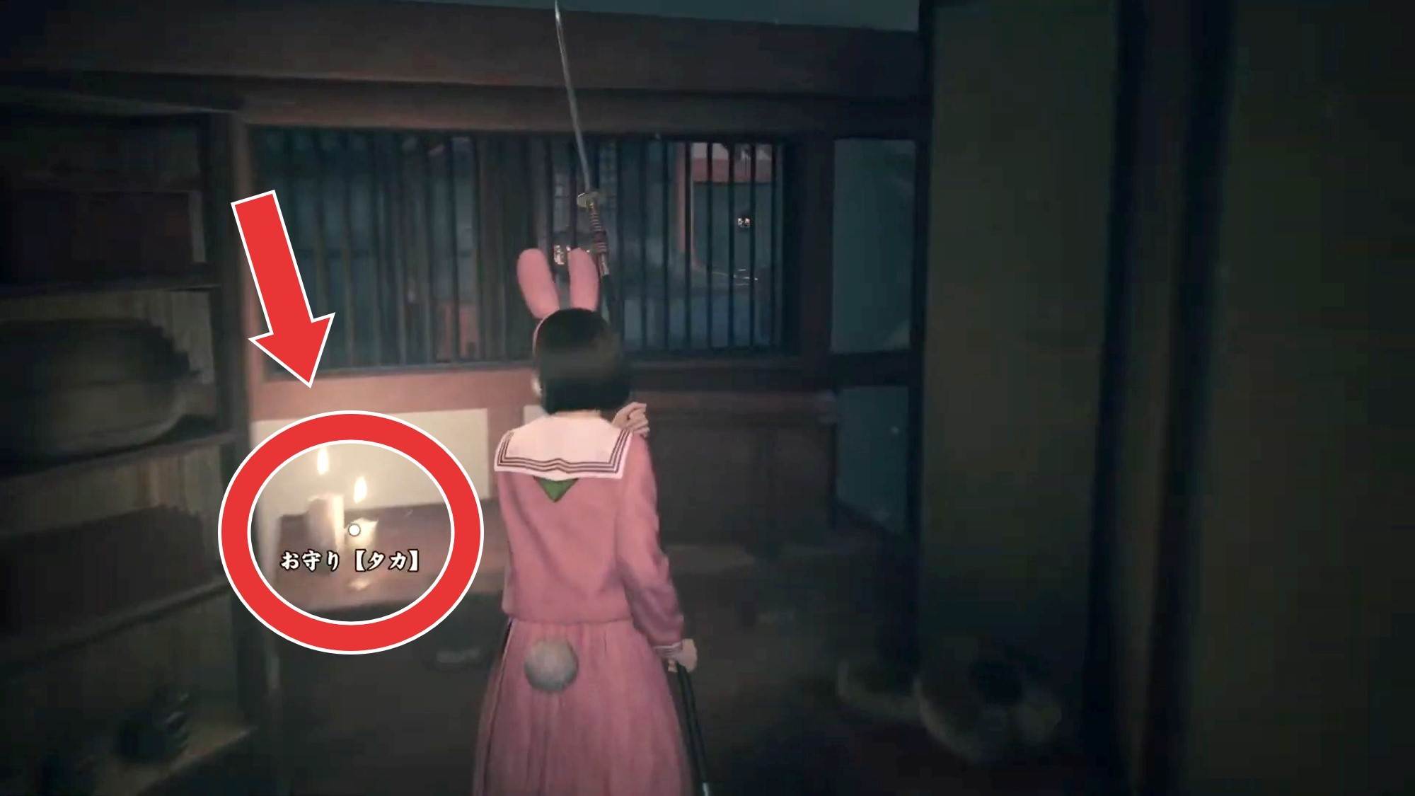 右通路を進む道中の小部屋では、「お守り【タカ】」を入手可能です。最奥まで到達した後は雛子が頭痛に陥り、敵も増えて探索しづらくなるため、余裕がある行きで回収しましょう。