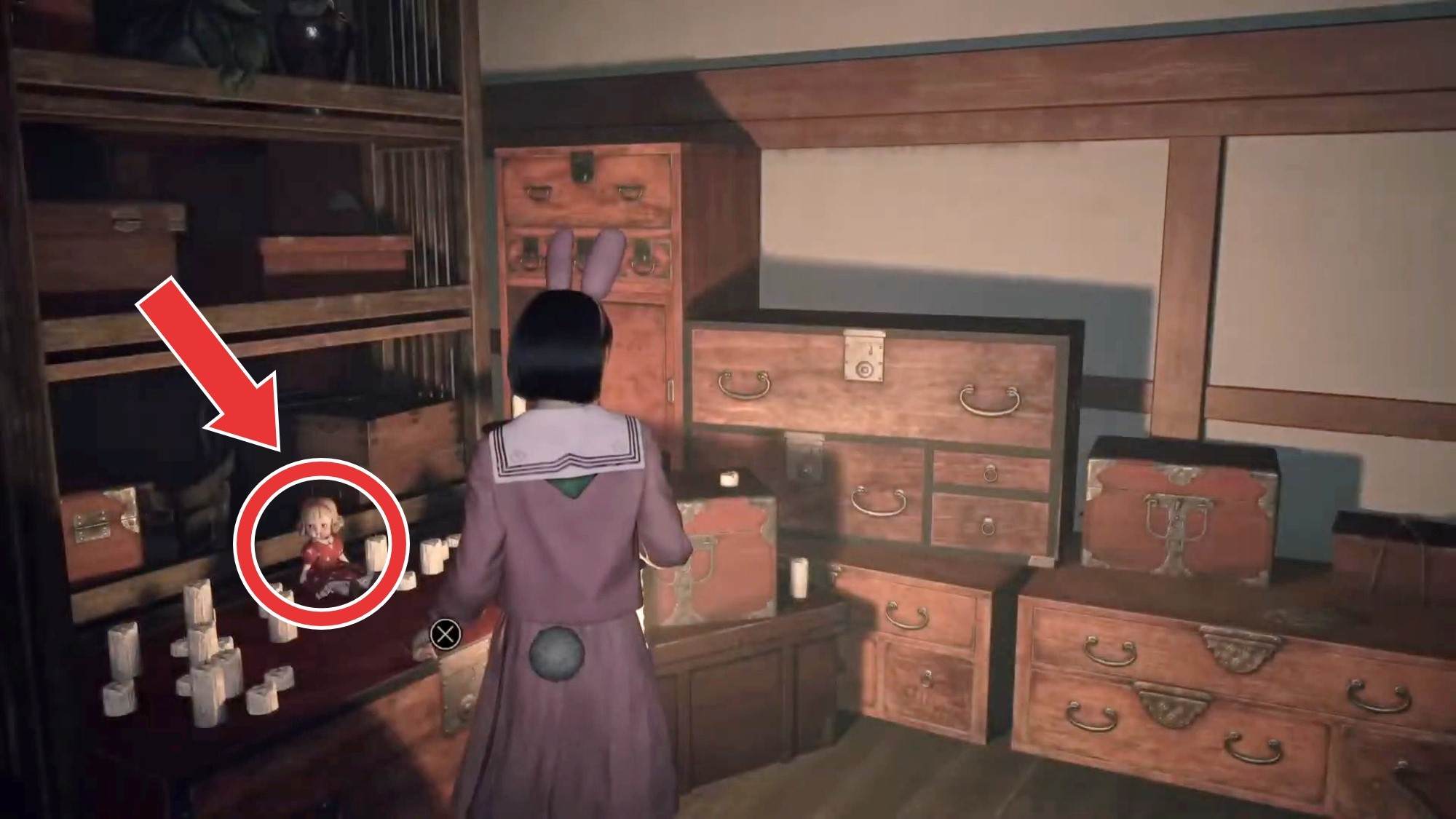 - 鍵を使って右下の小部屋に入り人形を調べる