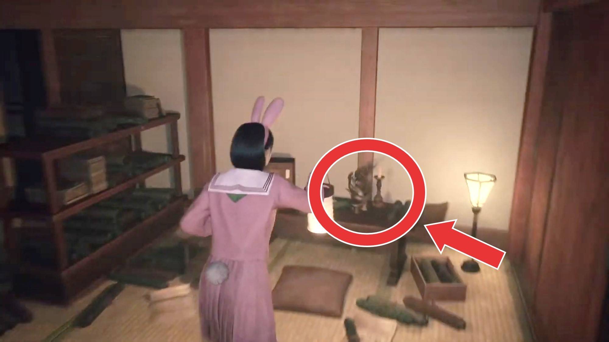 - 蝋燭の置かれた棚まで戻り「稲荷の小像」を置く