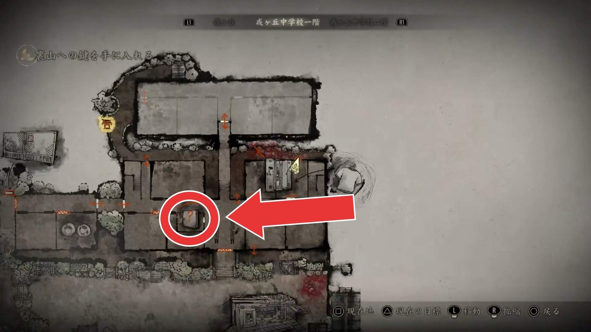 - 職員室で鍵を使って「裏山の鍵」を入手