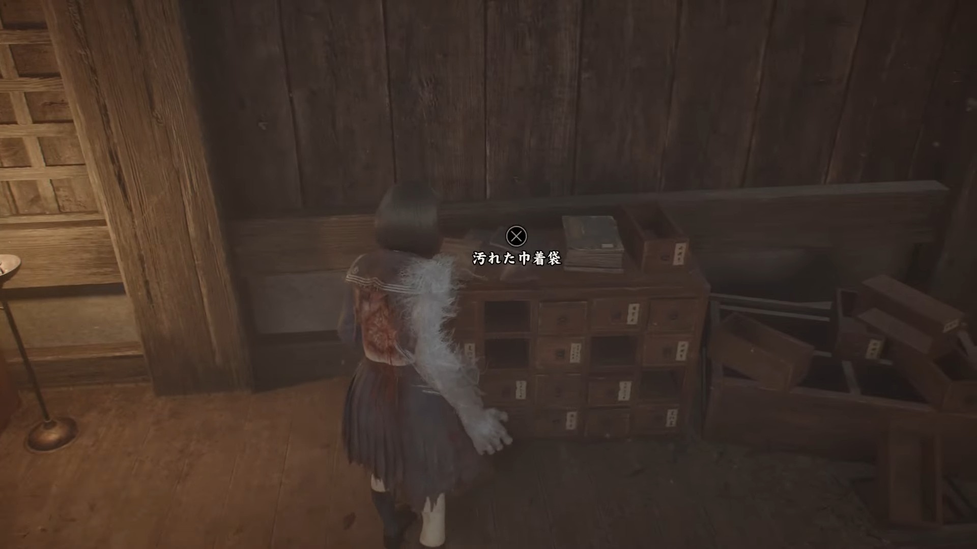 大広間に入り、外周を進んだ先の箪笥の上を調べる ※広間中央は崩れていて通れない |