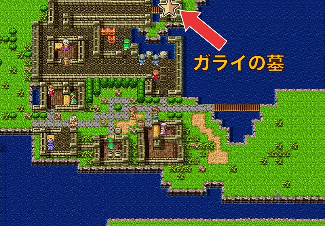 ガライの町は、全体マップの北西側にある町です。ガライの町には、ラストダンジョンへ行くのに必要なぎんのたてごとが入手できるガライの墓があります。