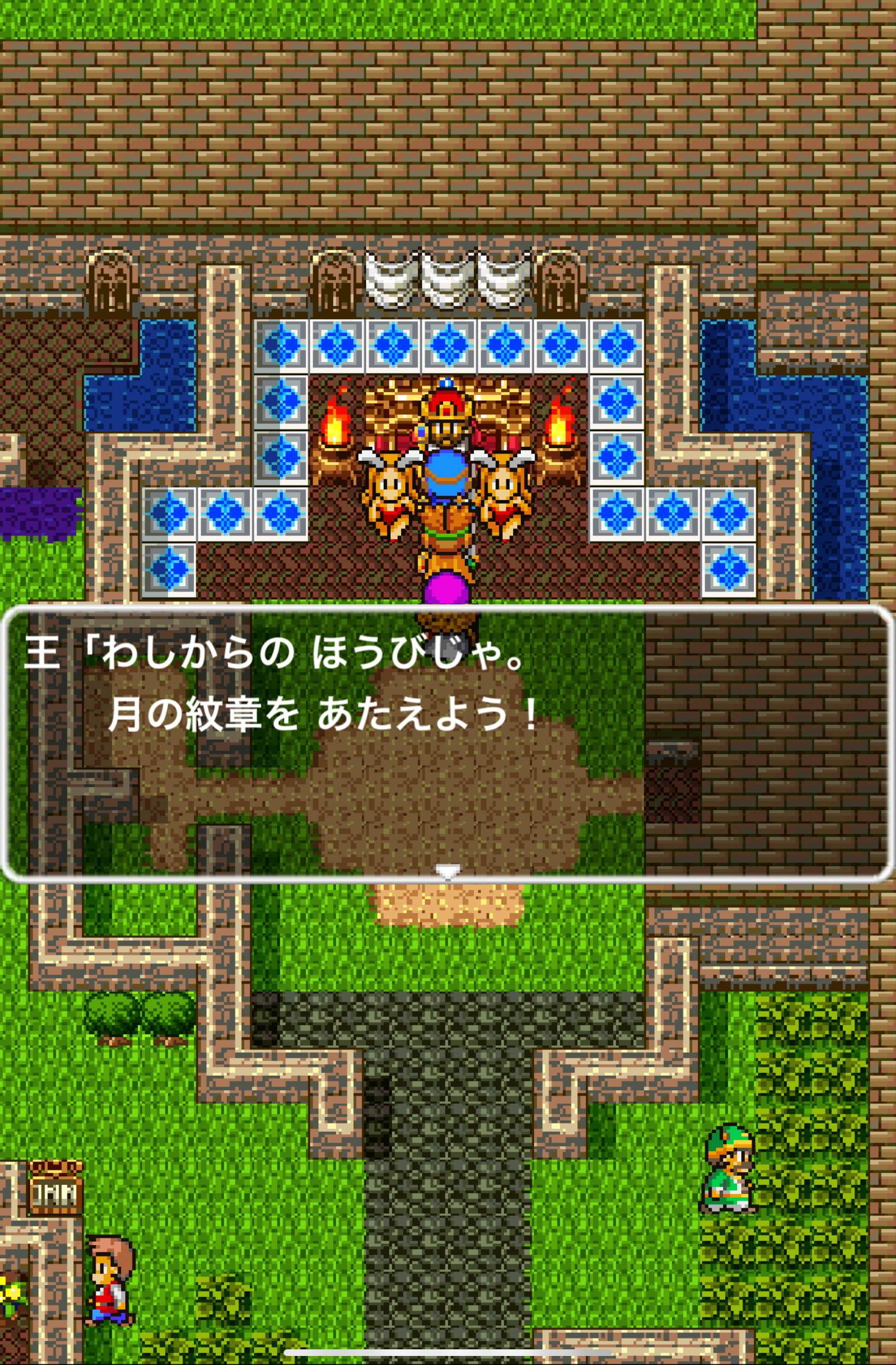 月の紋章は、キラータイガーを倒すと王様から入手できます。王様に話しかけると戦闘が始まるので、話しかける前にHPとMPを回復しておきましょう。