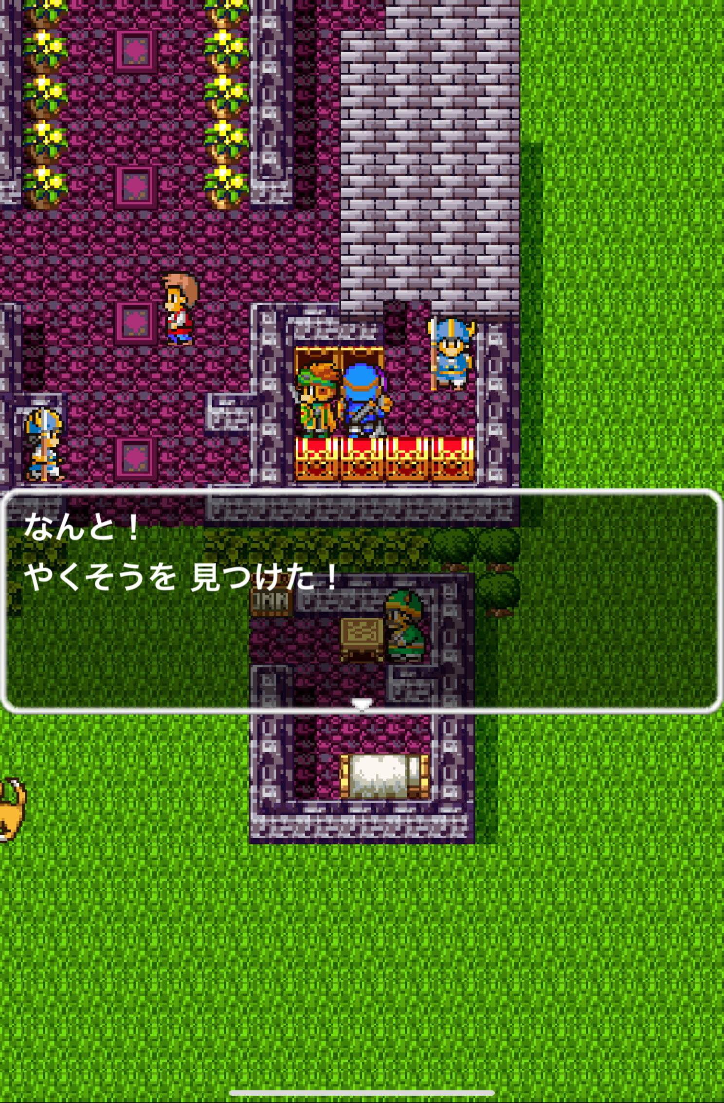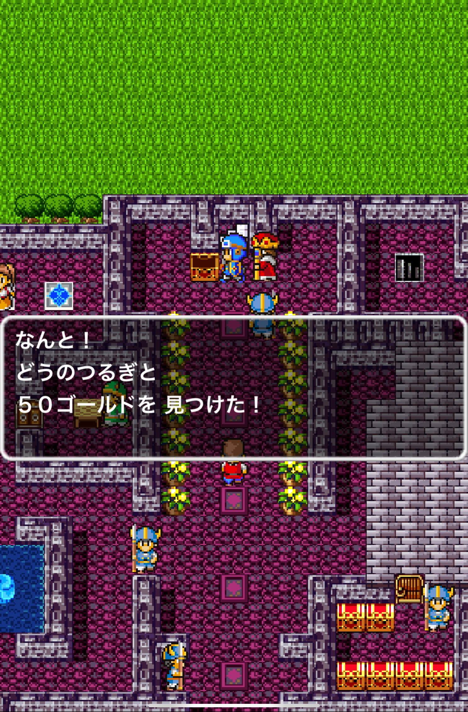 | 2 | 宝箱から「どうのつるぎ」と「50ゴールド」入手 メニューの「どうぐ」から「どうのつるぎ」を装備 |