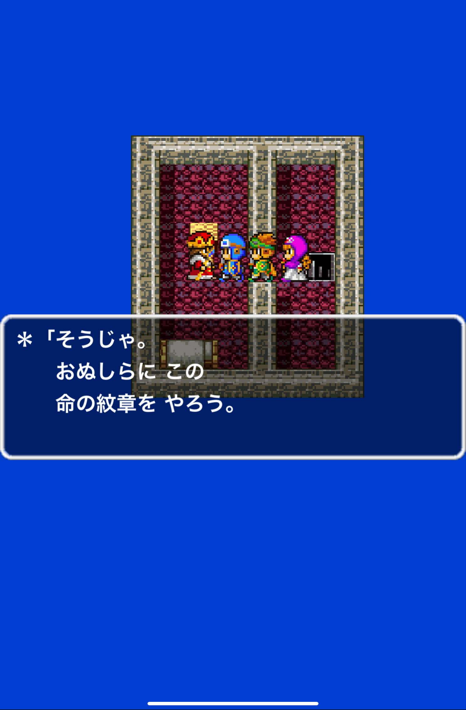 ラダトームでは王様から「命の紋章」が貰えます。王様は城にはおらず、武器防具屋の2Fにある入室するのに「きんのカギ」が必要な部屋にいます。