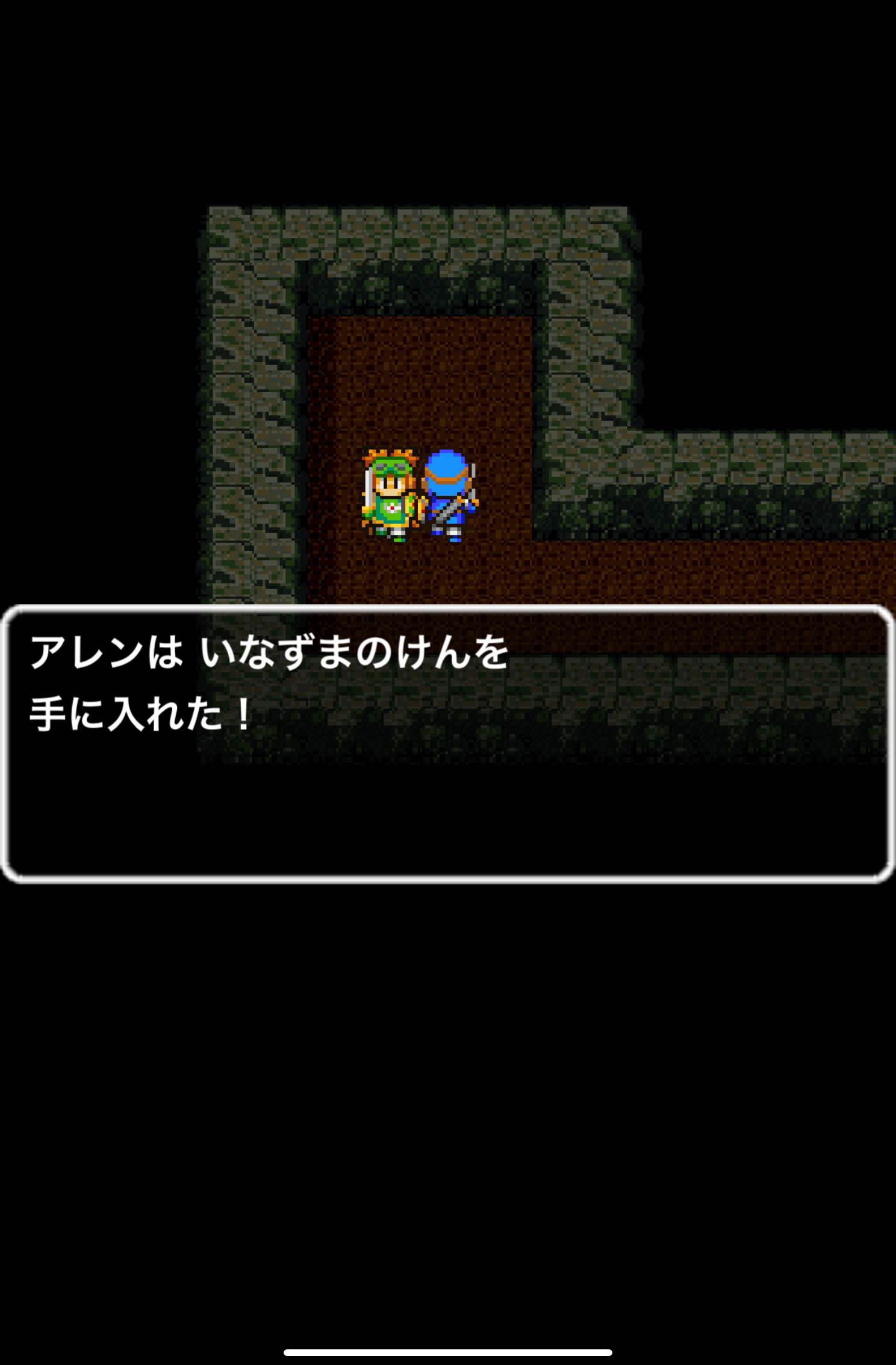 いなずまのけんは、5Fの落とし穴で4Fに降り、南西の落とし穴を降りた場所で入手できます。入手後は、落とし穴を降りて入口付近まで帰れますが、リレミトの方が早いのでMPに余裕がある場合は使いましょう。