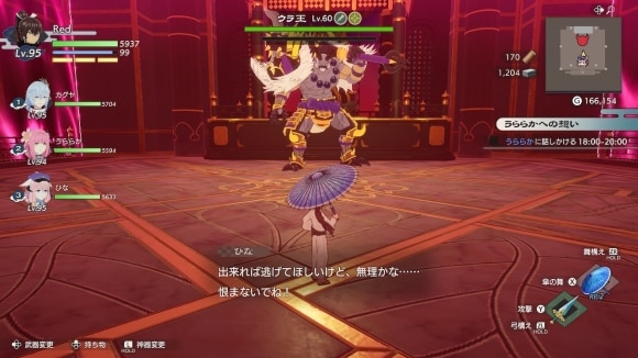 | 16 | 奥でボスの「ウラ王」を倒す ┗両手剣と光が弱点 ┗ダウン時はZR+Yの神器スキルでダメージを稼ぐ ┗ZR+Aの必勝の舞も活用する |