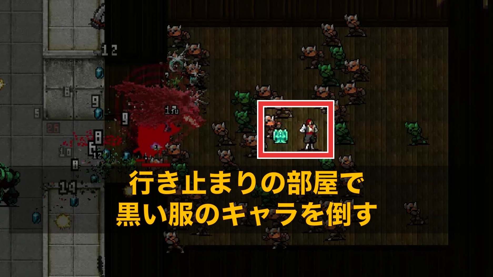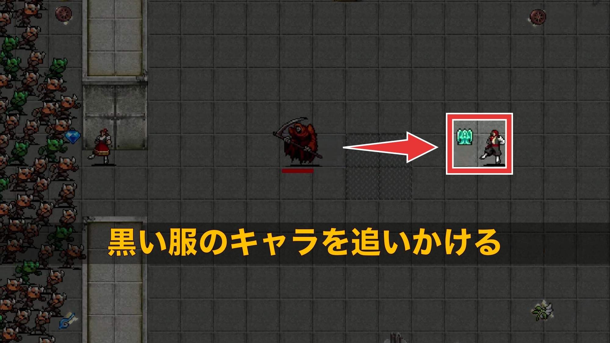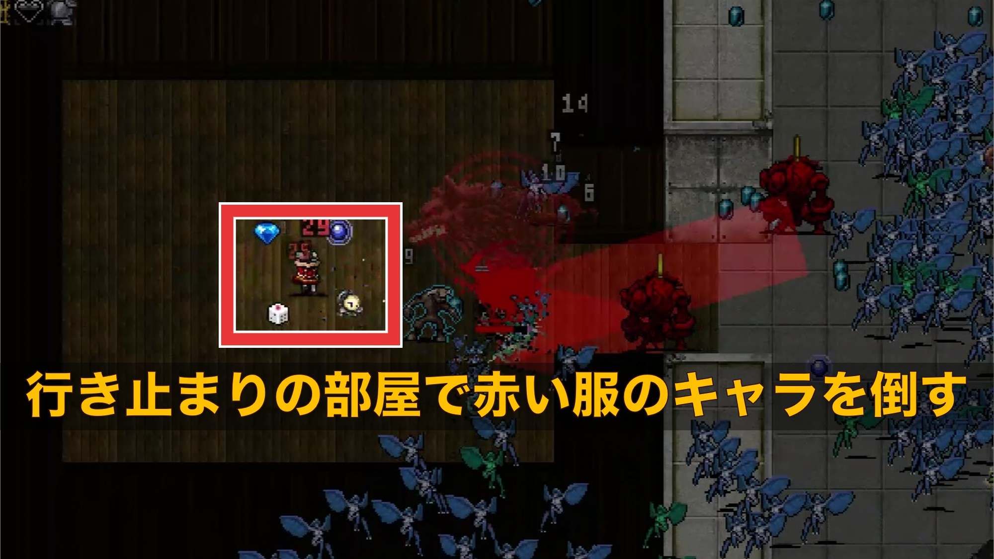 | 2 | 拡大する行き止まりの部屋に到着したら赤い服のキャラを倒す |