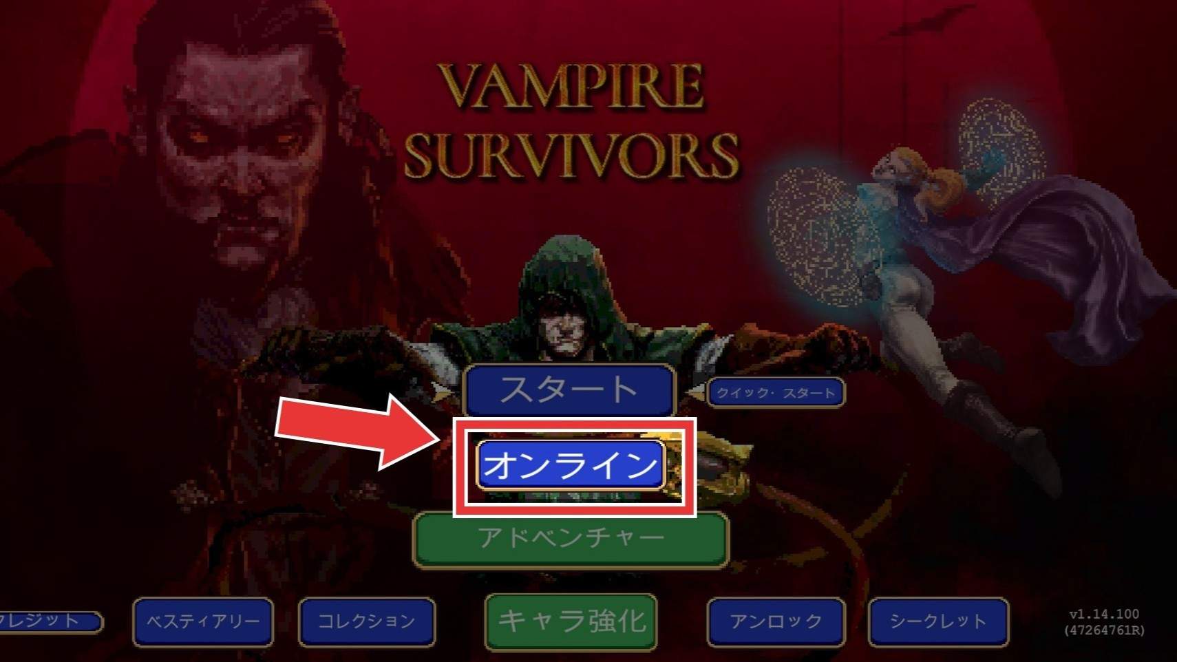 オンラインマルチプレイは、初期から解放されます。ver1.14で追加されたコンテンツのため、解放されていない場合はヴァンサバが最新版にアップデートされているか確認しましょう。