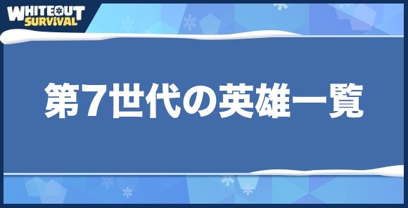 ホワイトアウト・サバイバル(ホワサバ)の第7世代の英雄一覧です。英雄スキル、探検・遠征ステータス比較、おすすめ探検・遠征編成を記載しています。