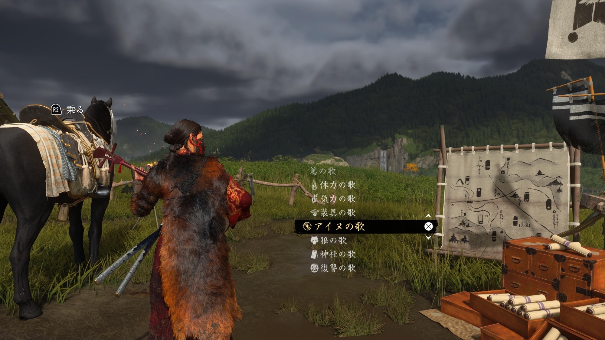 前作ツシマに引き続き、馬に乗ってフィールドを探索しながら、日本的な要素を盛り込んだギミックに触れながらキャラクターを強化していくというシステムを採用している。